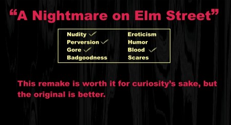Well, enough already. I’ve said what I wanted to say. There are a couple of positive things about the movie, but otherwise it fell flat and it was truly boring, at times. It was a case of too much story, bland characters, not enough action, and obvious connections that ruined the suspense and intrigue. Throw the awful subject matter into that and it was a brooding, depressing experience which was a lot like a U.S. remake of an Asian horror film. Even the effects weren’t all that great. The CGI looked bad and it was most noticeable in the famous “protruding-from-the-wall-scene”. The original shot was scary and surreal. This shot in the 2010 version was contrived and looked fake (in some cases, practical effects still look better than CGI). To be fair, there are a few startles in the movie, but overall I think that the original is scarier and is a much better film. The 2010 version is worth checking out, to see what they did with it, but I would rather stick with the original films and remember Freddy as he was, in his gratuitous glory days.